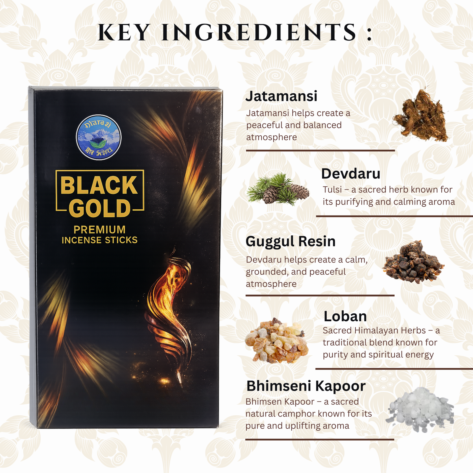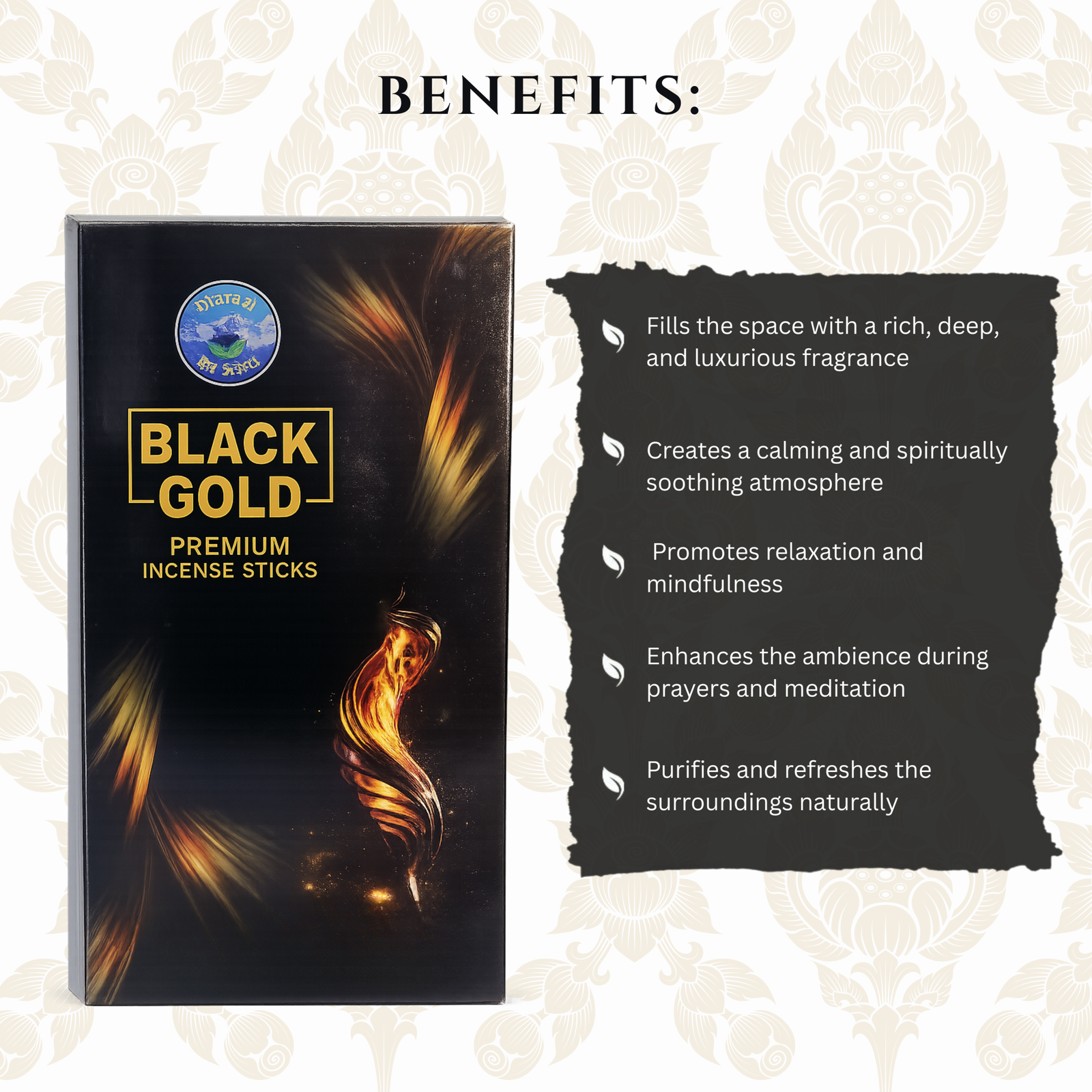 Black Gold Premium Incense Sticks are crafted for those who appreciate luxury, depth, and richness in fragrance. Made using high-quality aromatic compounds and carefully selected natural ingredients, these incense sticks release a bold, elegant aroma that instantly elevates the ambience of your home, meditation space, or prayer room.