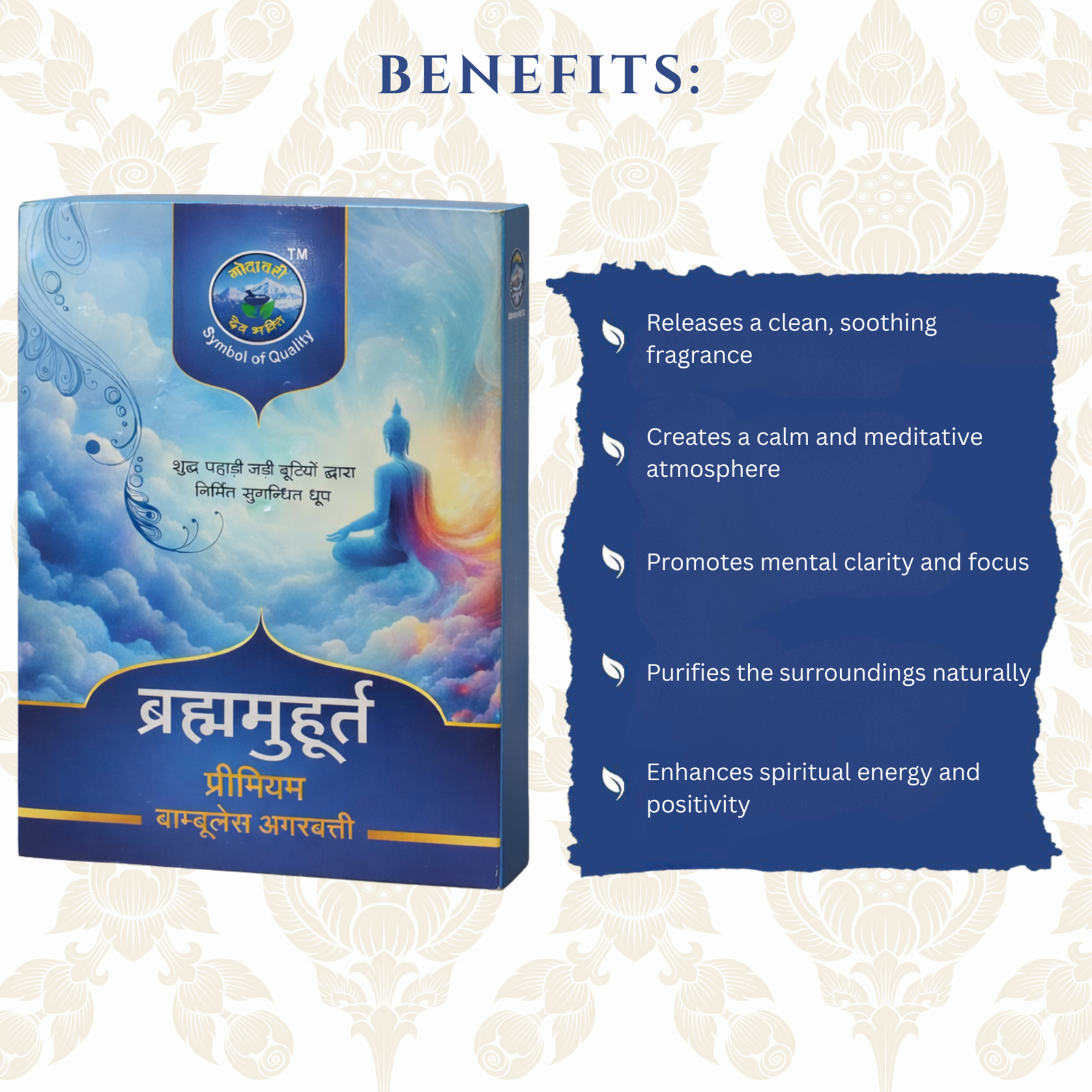 Brahma Muhurat Agarbatti is crafted to accompany the most auspicious hours of the day, when the mind is calm and the soul is most receptive. Its gentle, sacred fragrance purifies the surroundings and creates a serene atmosphere ideal for early-morning prayers, meditation, and spiritual practices.